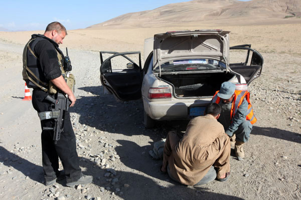 Ausbildung: ein deutscher Polizeibeamte beobachtet, wie und was die afghanischen Kollegen machen